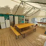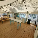 Widoki na ogród i okolicę sprawią, że pobyt będzie doskonały. Kemping posiada również wspólną łazienkę z oddzielną toaletą i prysznicem.